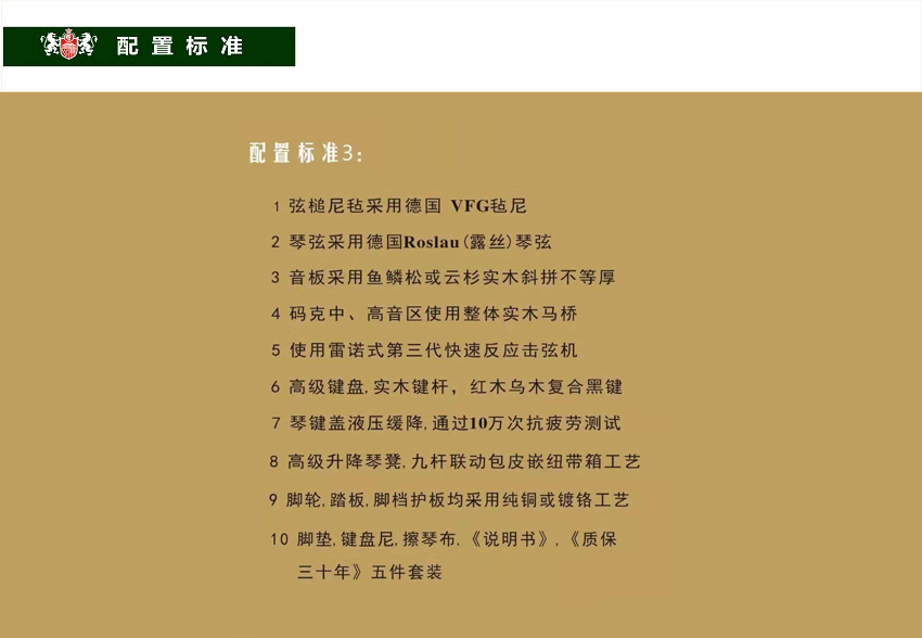 为了使您能够了解您和我们之间就有关产品责任和售后服务方面权利、义务产生和消除的约定,请您在使用前务必认真研读本产品使用维护说明书和质量担保承诺。任何不当的使用和操作都可能影响钢琴使用寿命、发音、音量、音色、和弹奏指触感觉;同时也将使你丧失提出索赔的权利。