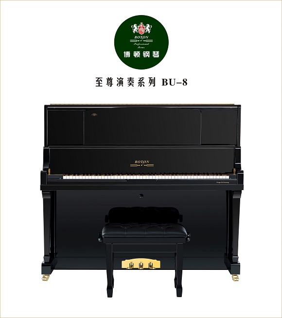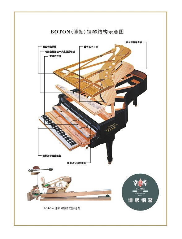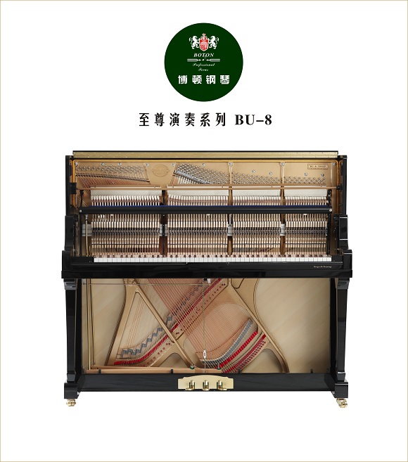 BOTON(博顿)钢琴采用不等厚非对称曲面分布,加强低音的共鸣,各音区音色连贯、统一和饱满。