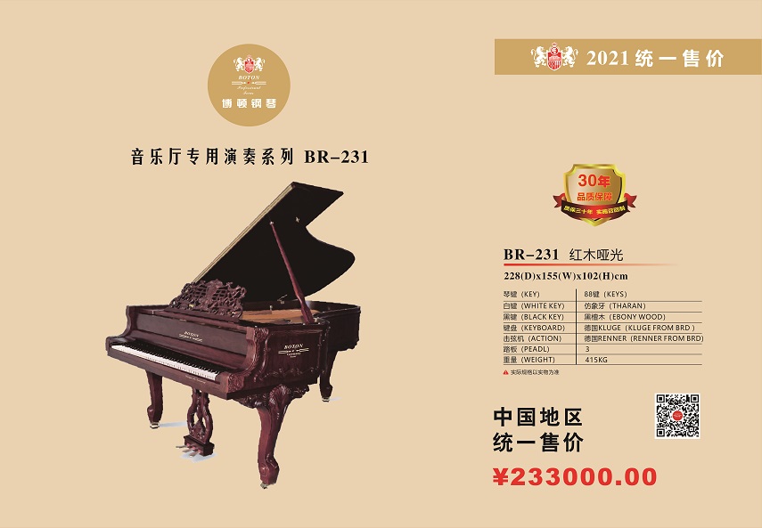 尊敬的用户,热烈欢迎您已成为勃拉姆斯 Brahms 钢琴用户大家庭中的一员,祝贺您以睿智的目光选择了我们的产品,我们将为您提供卓越的品质和一流的服务。Brahms 钢琴从进入中国大陆20年以来,在各项技术指标和制作工艺上都严格按照德国钢琴工艺标准生产制造,迄今为止已在生产和销售方面有了长足的发展,特别是在产品质量上多项指标已远远超过中国乐器行业国家标准和同行水平。现已被作为上海音乐学院国际钢琴大师班演奏用琴;美国奥柏林国际钢琴大赛中国赛区指定用琴;上海国际书展专家指定演示用琴;上海浦东国际机场T2航站楼迎宾大厅形象展示指定用琴;厦门高崎国际机场迎宾大厅形象展示用情等。在销售商和消费者心目中已经建立起了良好的品质形象和信誉,品牌效应也日见彰显。为了酬谢广大Brahms 用户的厚爱,确保Brahms 钢琴的恒久卓越,我们特联合特约经销商向 Brahms 用户提供:1、电话定时回访;2、上门跟踪服务;3、特设咨询和监督投诉专线电话;4、对产品品质的保障管理切实实行 “质保30年,实施召回制”。