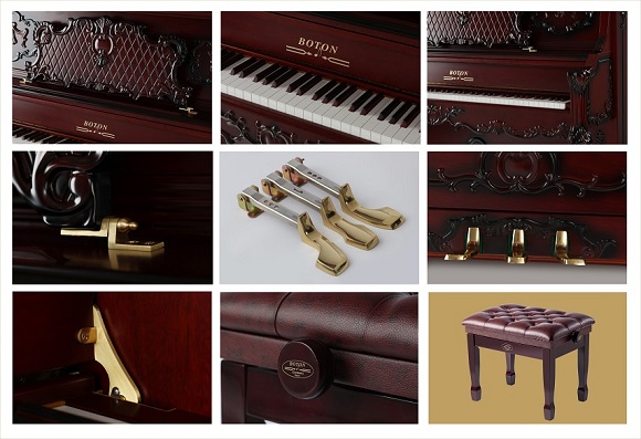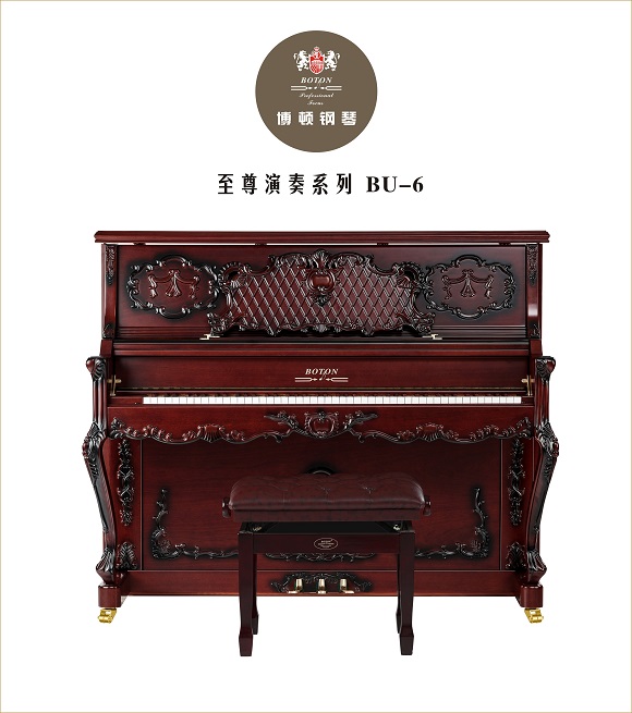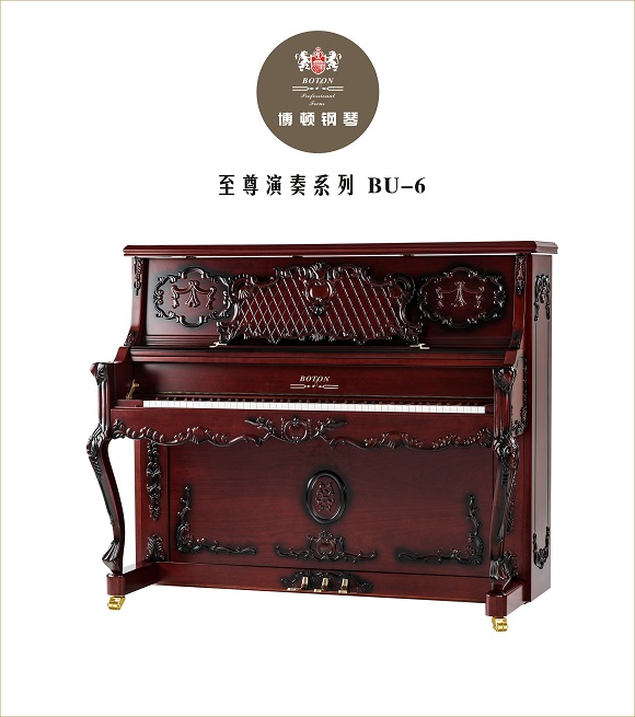 BOTON(博顿)钢琴采用不等厚非对称曲面分布,加强低音的共鸣,各音区音色连贯、统一和饱满。