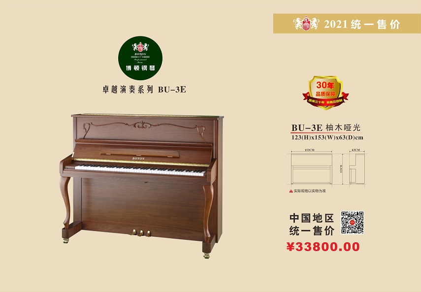 尊敬的用户,热烈欢迎您已成为BOTON(博顿)钢琴用户大家庭中的一员,祝贺您以睿智的目光选择了我们的产品,我们将为您提供卓越的品质和一流的服务。BOTON钢琴从在中国大陆注册成立生产十五年以来,在各项技术指标和制作工艺上都严格按照德国钢琴工艺标准生产制造,迄今为止已在生产和销售方面有了长足的发展,特别是在产品质量上多项指标已远远超过中国乐器行业国家标准和同行水平。现已被作为上海音乐学院国际钢琴大师班演奏用琴;西安音乐学院钢琴系,新疆师范大学音乐学院,上海交响乐团、合唱团演奏用琴;美国奥柏林国际钢琴大赛中国赛区指定用琴;上海国际书展专家指定演示用琴;上海浦东国际机场T2航站楼迎宾大厅形象展示指定用琴;厦门高崎国际机场迎宾大厅形象展示用情等。在销售商和消费者心目中已经建立起了良好的品质形象和信誉,品牌效应也日见彰显。为了酬谢广大BOTON用户的厚爱,确保BOTON钢琴的恒久卓越,我们特联合特约经销商向BOTON用户提供:1、电话定时回访;2、上门跟踪服务;3、特设咨询和监督投诉专线电话;4、对产品品质的保障管理切实实行“质保30年实施召回制”。