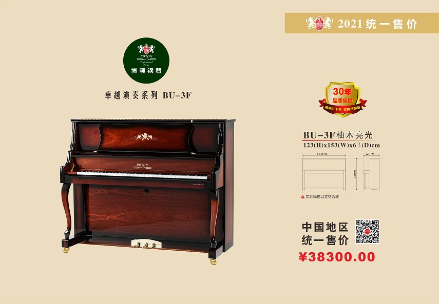 尊敬的用户,热烈欢迎您已成为BOTON(博顿)钢琴用户大家庭中的一员,祝贺您以睿智的目光选择了我们的产品,我们将为您提供卓越的品质和一流的服务。BOTON钢琴从在中国大陆注册成立生产十五年以来,在各项技术指标和制作工艺上都严格按照德国钢琴工艺标准生产制造,迄今为止已在生产和销售方面有了长足的发展,特别是在产品质量上多项指标已远远超过中国乐器行业国家标准和同行水平。现已被作为上海音乐学院国际钢琴大师班演奏用琴;西安音乐学院钢琴系,新疆师范大学音乐学院,上海交响乐团、合唱团演奏用琴;美国奥柏林国际钢琴大赛中国赛区指定用琴;上海国际书展专家指定演示用琴;上海浦东国际机场T2航站楼迎宾大厅形象展示指定用琴;厦门高崎国际机场迎宾大厅形象展示用情等。在销售商和消费者心目中已经建立起了良好的品质形象和信誉,品牌效应也日见彰显。为了酬谢广大BOTON用户的厚爱,确保BOTON钢琴的恒久卓越,我们特联合特约经销商向BOTON用户提供:1、电话定时回访;2、上门跟踪服务;3、特设咨询和监督投诉专线电话;4、对产品品质的保障管理切实实行“质保30年实施召回制”。