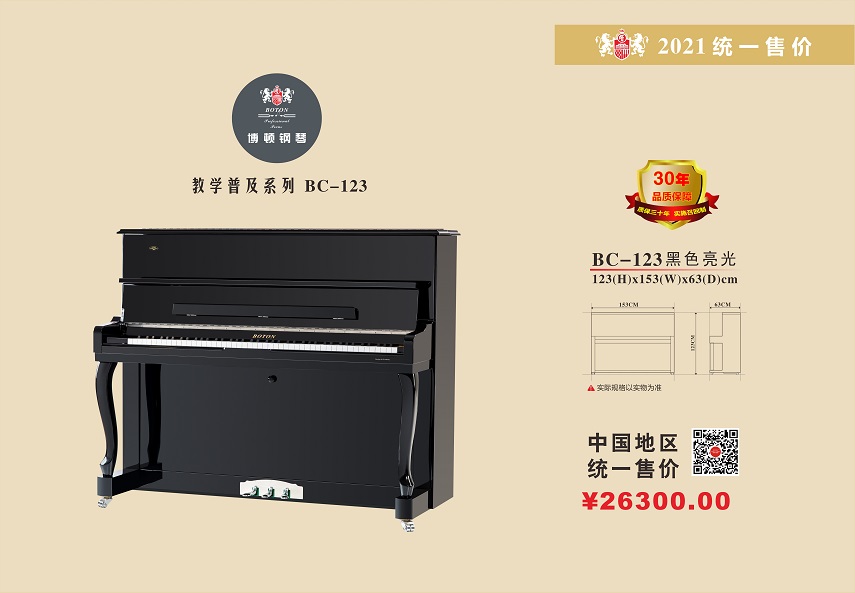 BOTON(博顿)钢琴采用不等厚非对称曲面分布,加强低音的共鸣,各音区音色连贯、统一和饱满。