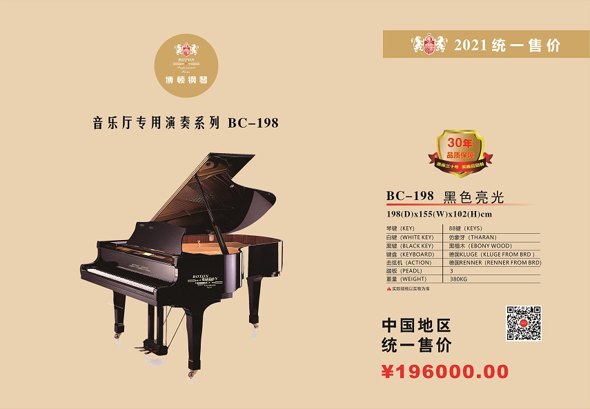 尊敬的用户,热烈欢迎您已成为BOTON(博顿)钢琴用户大家庭中的一员,祝贺您以睿智的目光选择了我们的产品,我们将为您提供卓越的品质和一流的服务。BOTON钢琴从在中国大陆注册成立生产十五年以来,在各项技术指标和制作工艺上都严格按照德国钢琴工艺标准生产制造,迄今为止已在生产和销售方面有了长足的发展,特别是在产品质量上多项指标已远远超过中国乐器行业国家标准和同行水平。现已被作为上海音乐学院国际钢琴大师班演奏用琴;西安音乐学院钢琴系,新疆师范大学音乐学院,上海交响乐团、合唱团演奏用琴;美国奥柏林国际钢琴大赛中国赛区指定用琴;上海国际书展专家指定演示用琴;上海浦东国际机场T2航站楼迎宾大厅形象展示指定用琴;厦门高崎国际机场迎宾大厅形象展示用情等。在销售商和消费者心目中已经建立起了良好的品质形象和信誉,品牌效应也日见彰显。为了酬谢广大BOTON用户的厚爱,确保BOTON钢琴的恒久卓越,我们特联合特约经销商向BOTON用户提供:1、电话定时回访;2、上门跟踪服务;3、特设咨询和监督投诉专线电话;4、对产品品质的保障管理切实实行“质保30年实施召回制”。