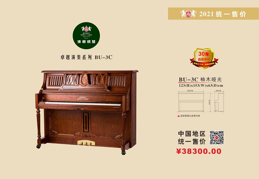 尊敬的用户,热烈欢迎您已成为BOTON(博顿)钢琴用户大家庭中的一员,祝贺您以睿智的目光选择了我们的产品,我们将为您提供卓越的品质和一流的服务。BOTON钢琴从在中国大陆注册成立生产十五年以来,在各项技术指标和制作工艺上都严格按照德国钢琴工艺标准生产制造,迄今为止已在生产和销售方面有了长足的发展,特别是在产品质量上多项指标已远远超过中国乐器行业国家标准和同行水平。现已被作为上海音乐学院国际钢琴大师班演奏用琴;西安音乐学院钢琴系,新疆师范大学音乐学院,上海交响乐团、合唱团演奏用琴;美国奥柏林国际钢琴大赛中国赛区指定用琴;上海国际书展专家指定演示用琴;上海浦东国际机场T2航站楼迎宾大厅形象展示指定用琴;厦门高崎国际机场迎宾大厅形象展示用情等。在销售商和消费者心目中已经建立起了良好的品质形象和信誉,品牌效应也日见彰显。为了酬谢广大BOTON用户的厚爱,确保BOTON钢琴的恒久卓越,我们特联合特约经销商向BOTON用户提供:1、电话定时回访;2、上门跟踪服务;3、特设咨询和监督投诉专线电话;4、对产品品质的保障管理切实实行“质保30年实施召回制”。